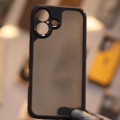 Silicone Black Border+Smoke Transparent Carbon Plastic Case-iPhone 16