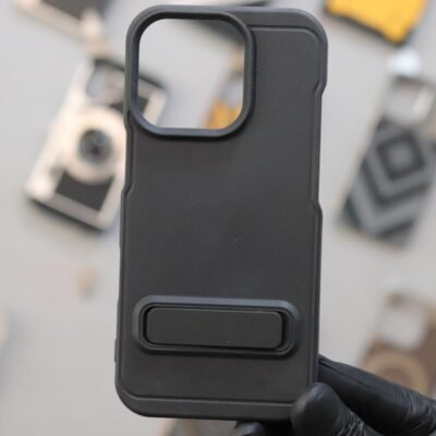 Side Cut Soft Silicone Stand Case-Black-iPhone 16 Pro