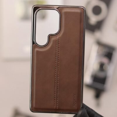 NY PU Leather Chrome Case-Dark Brown-S25 Ultra