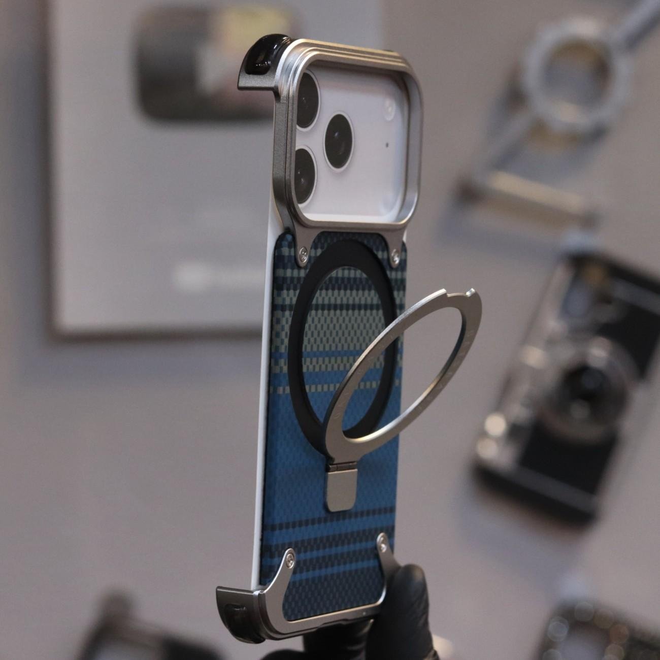 Carbon Fiber Metal Back Case With Ring Stand MoonRise Silver (S.No. CFMBCRSMRS-17Pro)