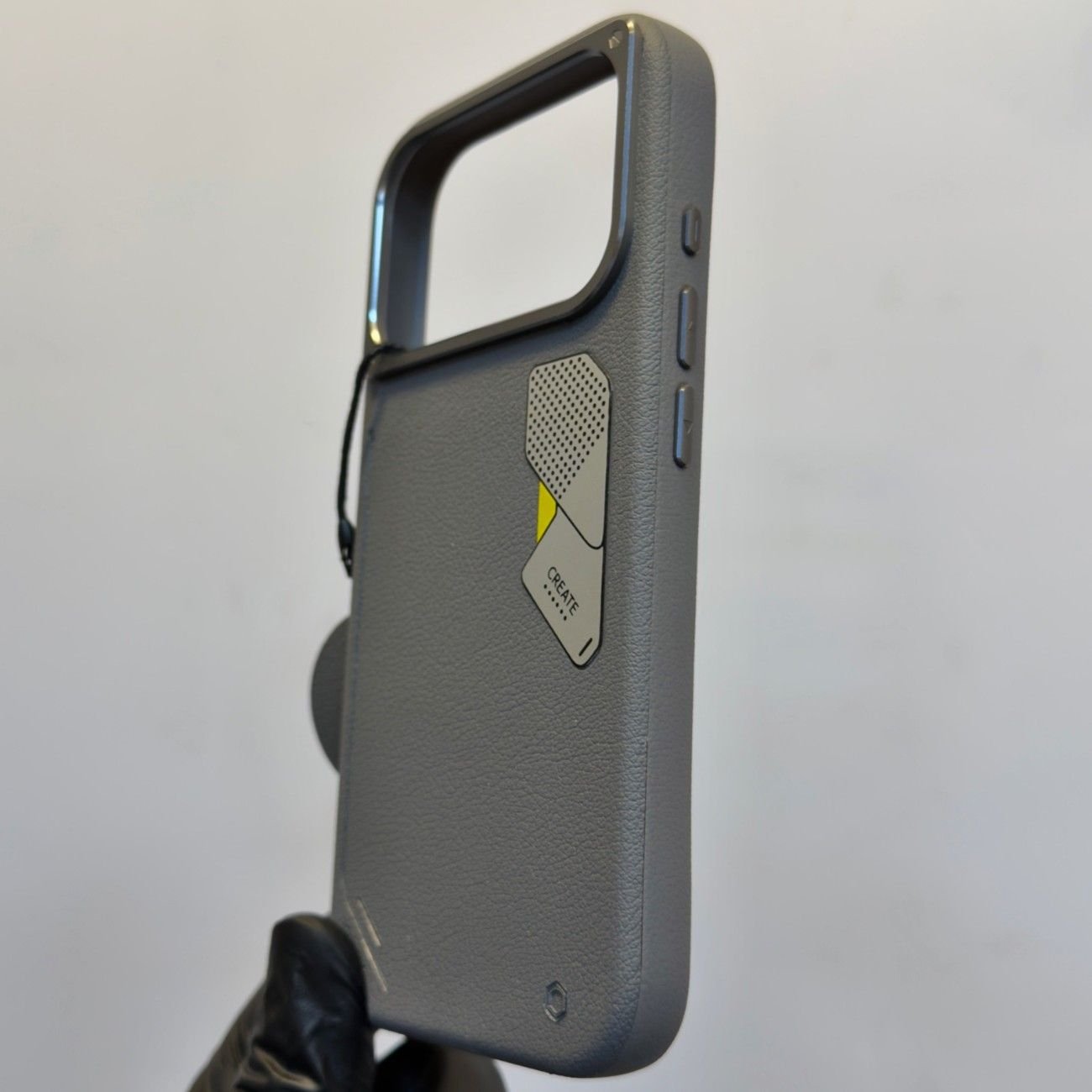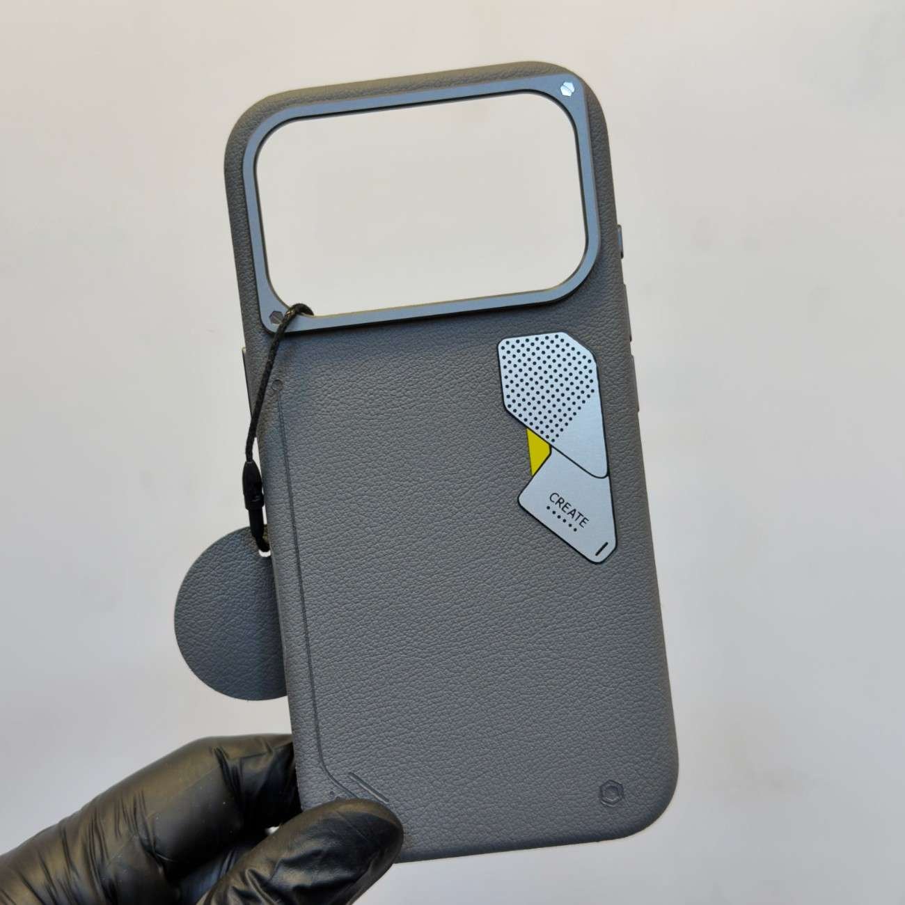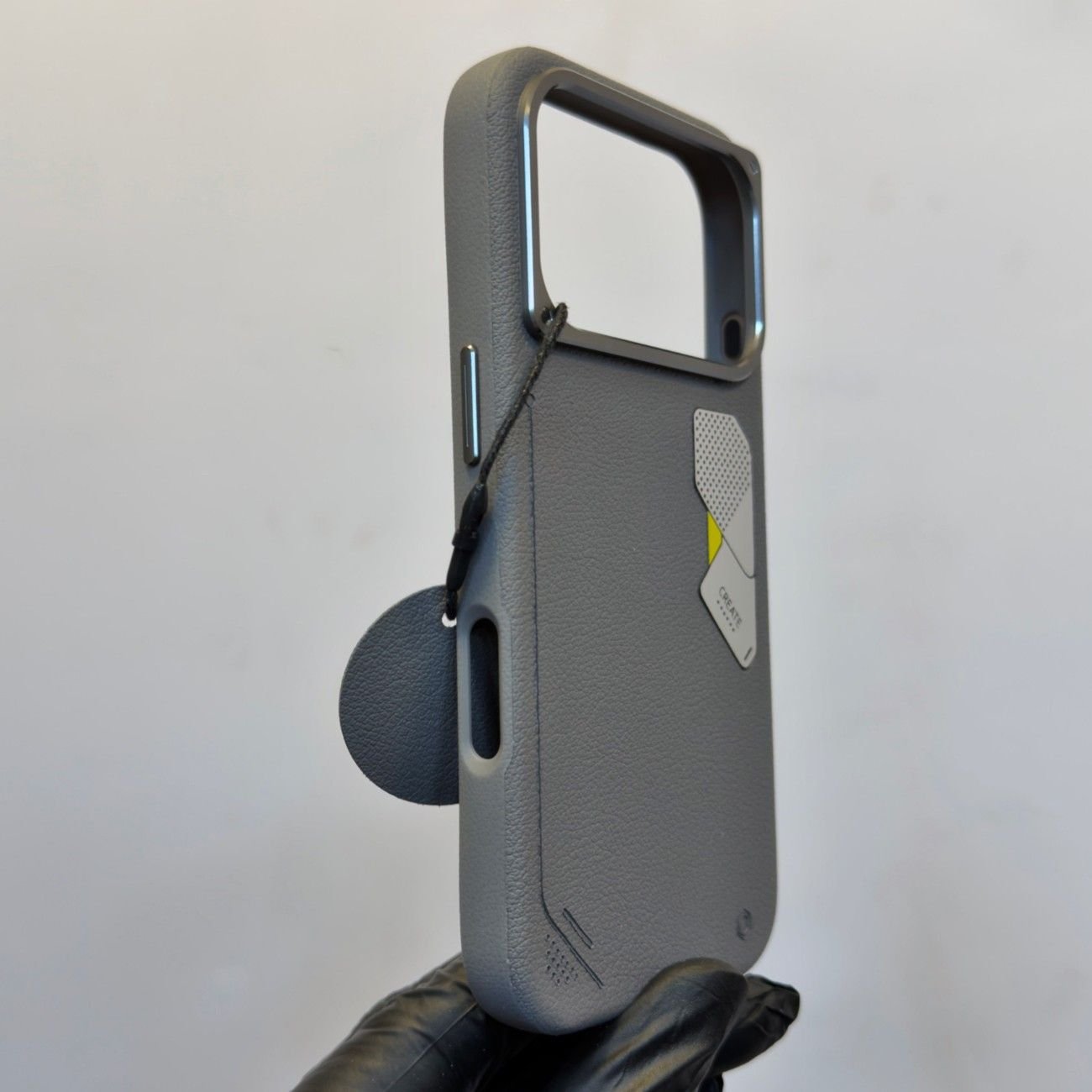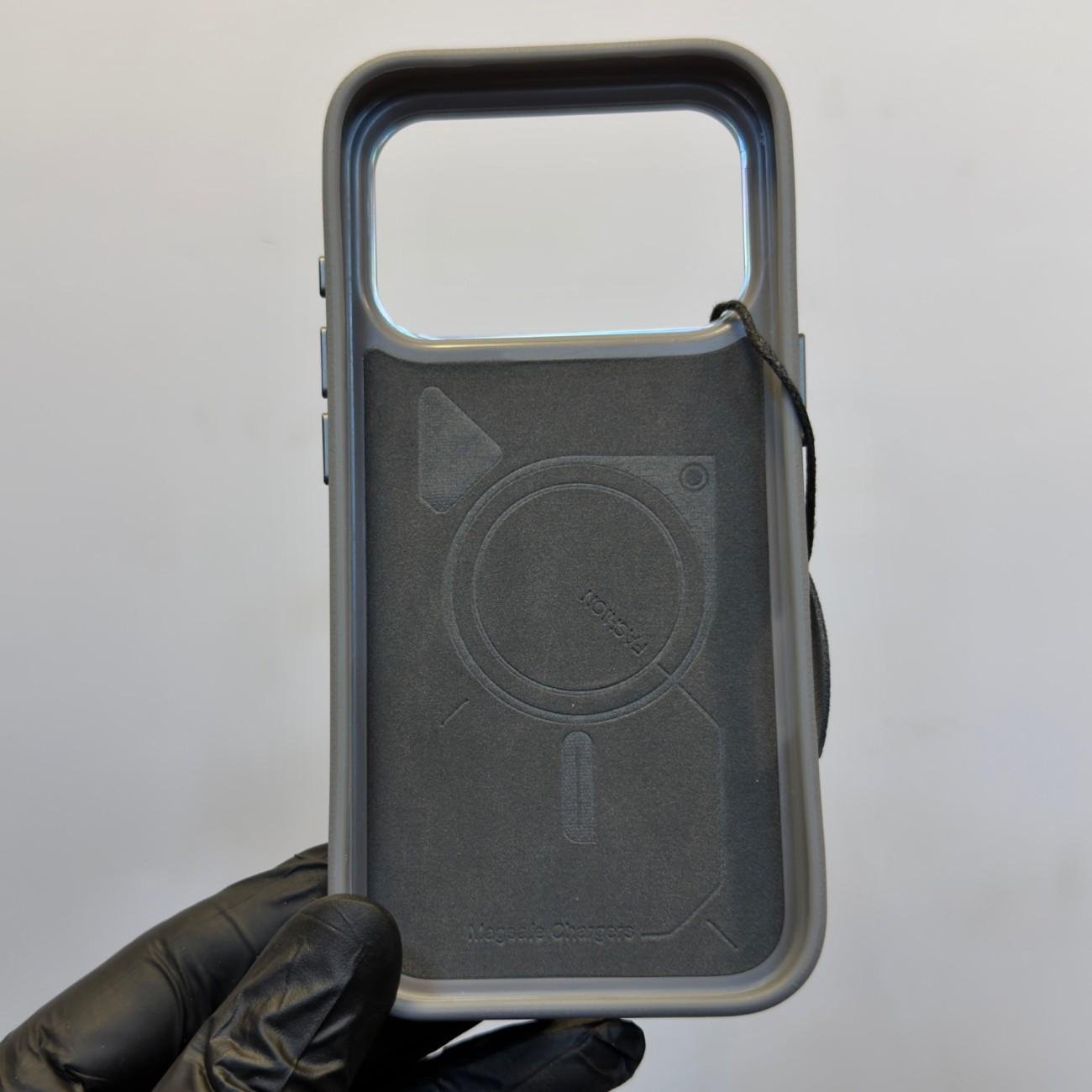 create leather case with magsafe, metal camera protection, metal button and metal Logo.