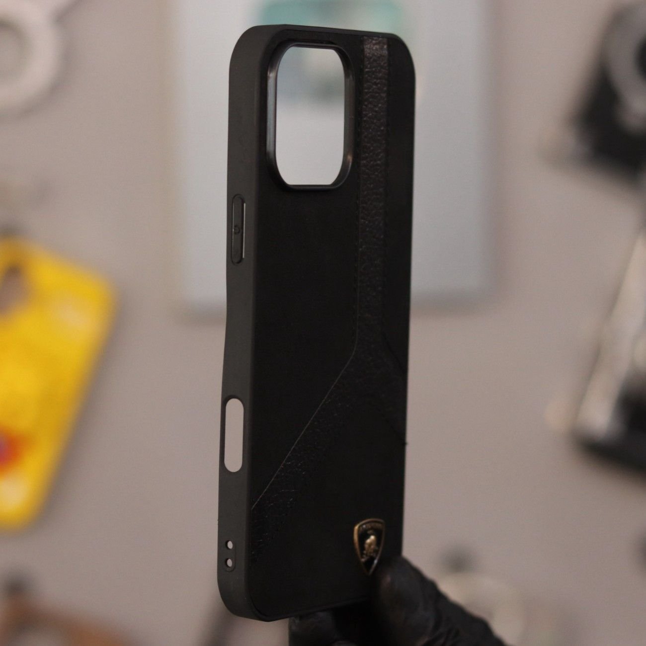 Lamborgini Metal Logo Case-Black-iPhone 15 Pro Max