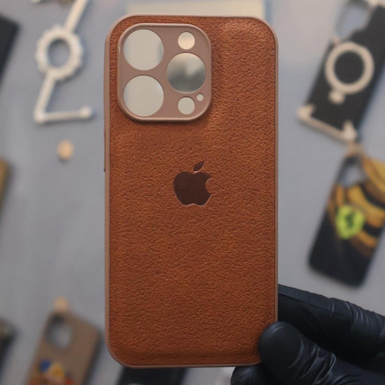 Leather 3D Textured with Logo Case-Brown-iPhone 15 Pro