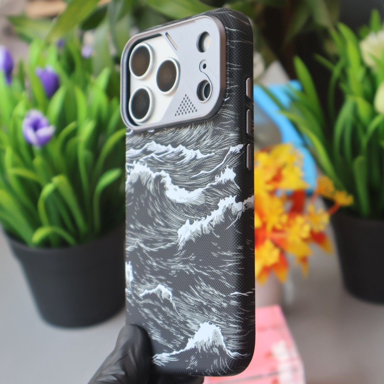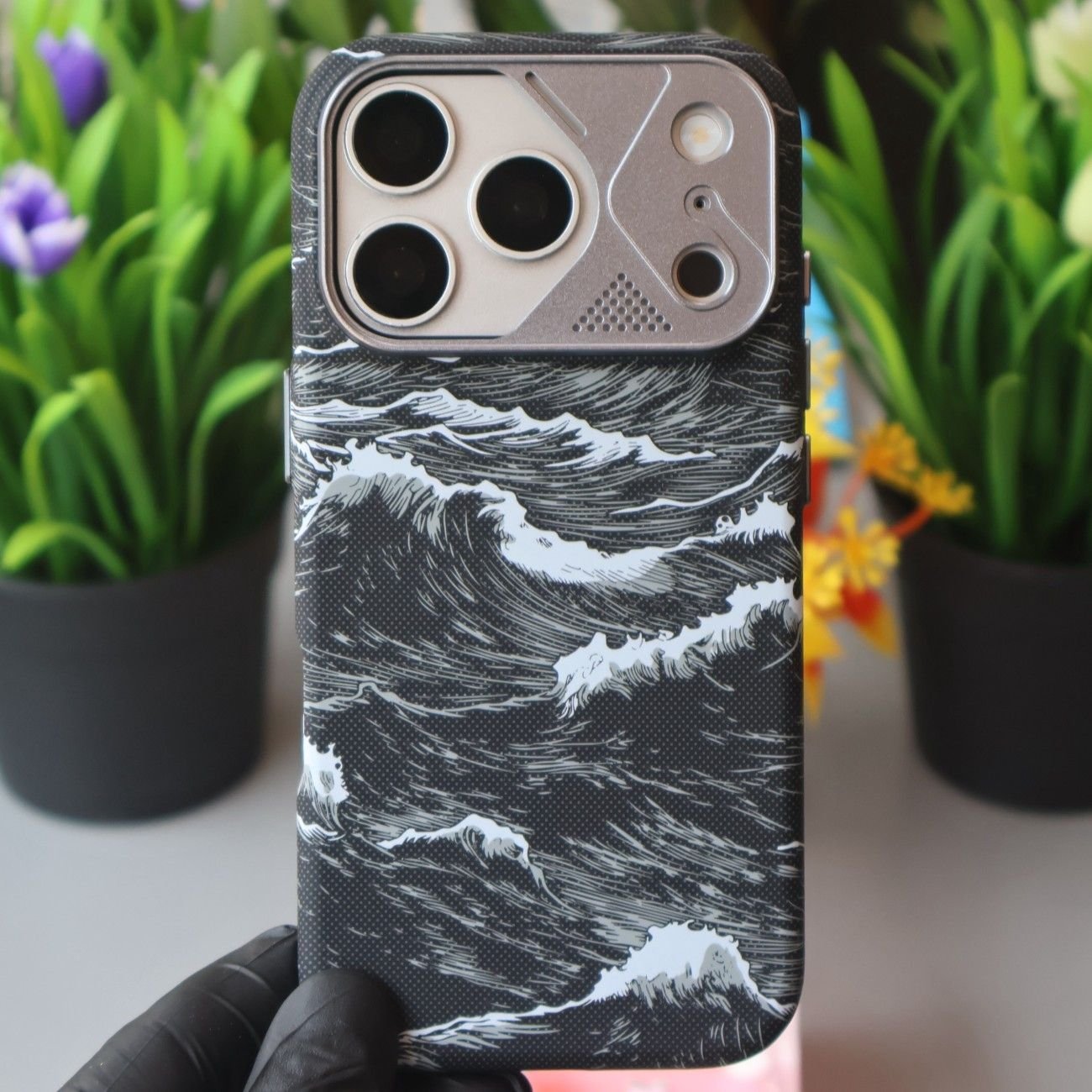 Luxo Life Wave Metal Camera Protection Case-Black-iPhone 17 Pro Max