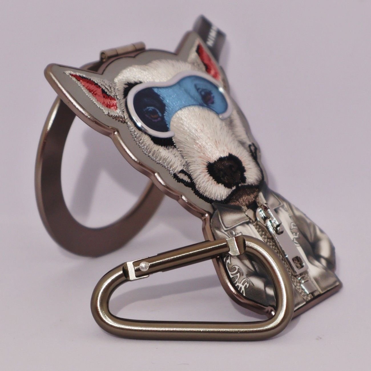 Featuring trendy glasses and a real zipper, this magnetic stand is a standout for its unique style. It comes with a climbing buckle in the same color scheme.
