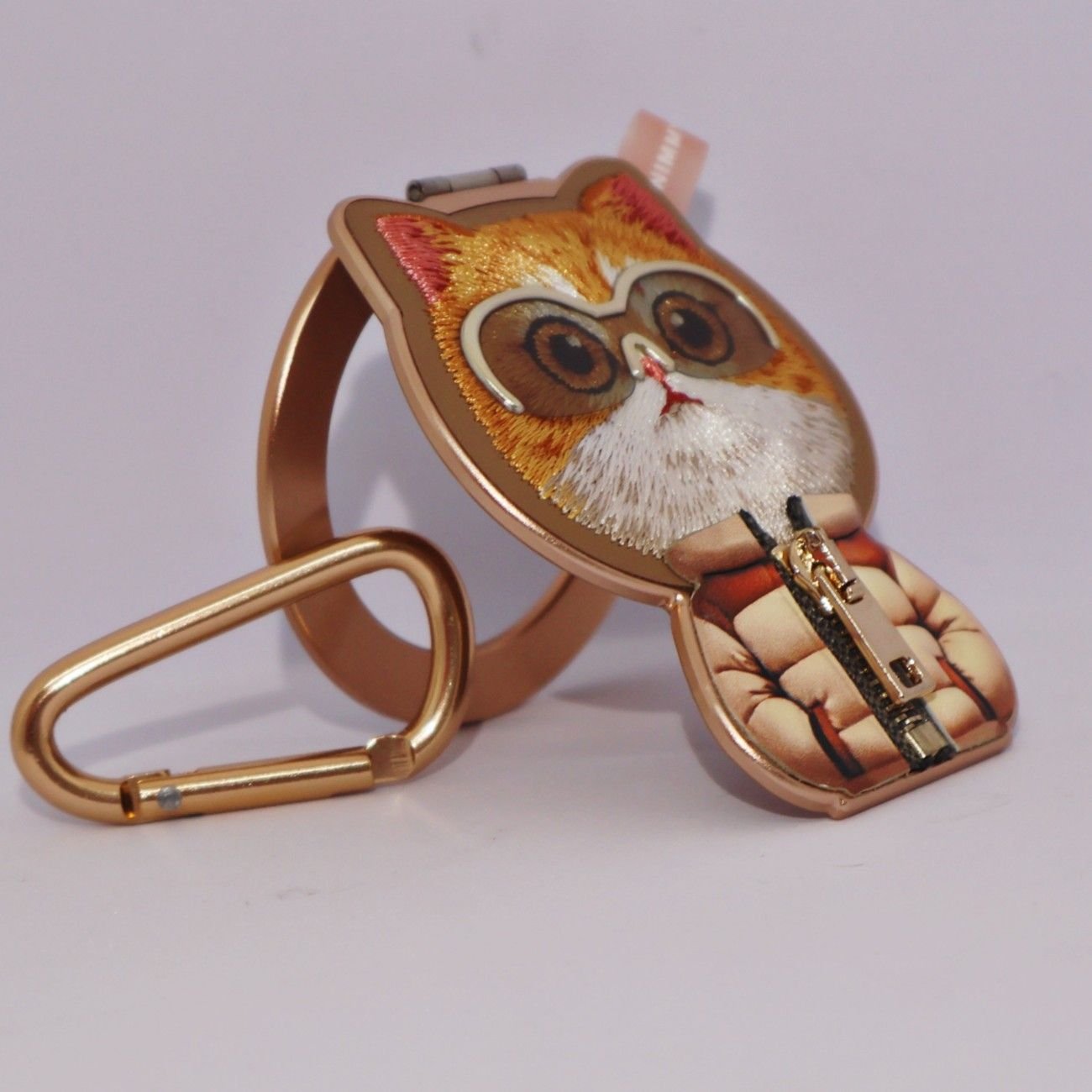 Featuring trendy glasses and a real zipper, this magnetic stand is a standout for its unique style. It comes with a climbing buckle in the same color scheme.
