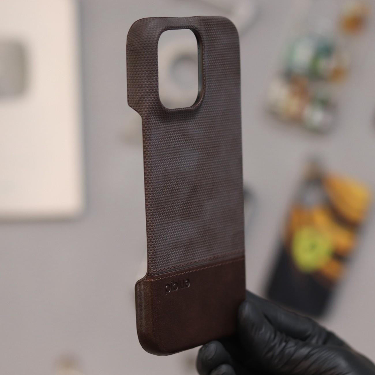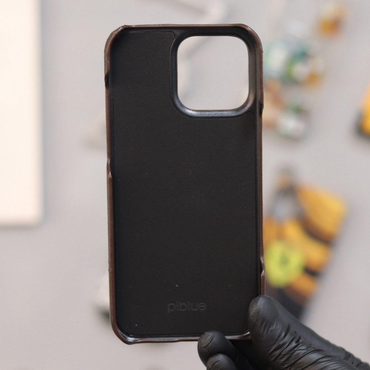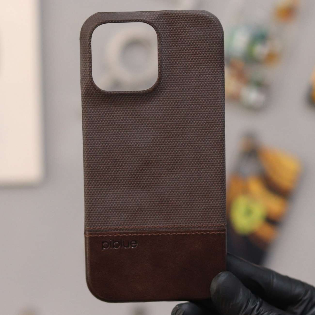 Piblue Dual Tone Leather Side Cut Case-Dark Brown-iPhone 16 Pro Max
