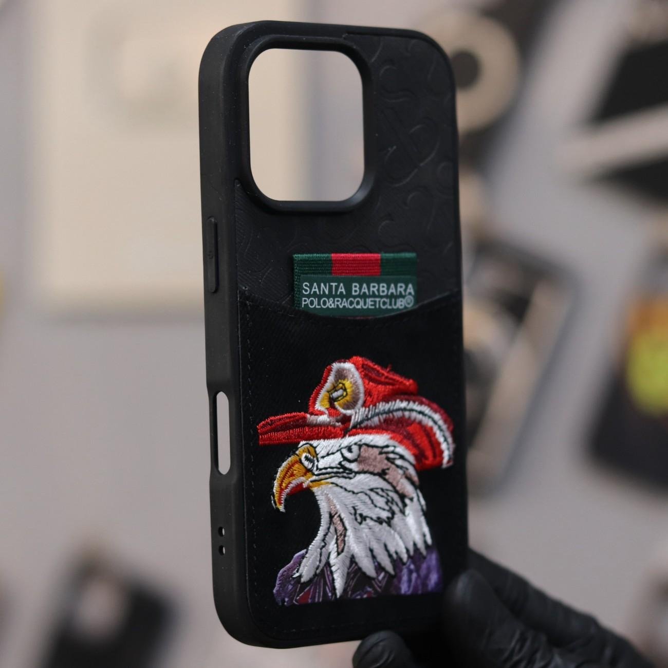 Polo Card Holder Eagle Leather Texture Case-Black-iPhone 16 Pro