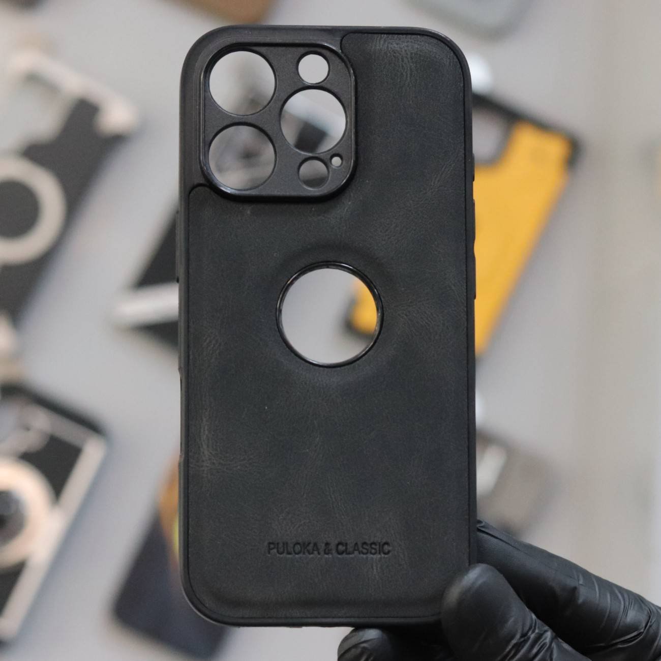 Puloka & Classic leather Textured Logo Cut Case-Black-iPhone 16 Pro