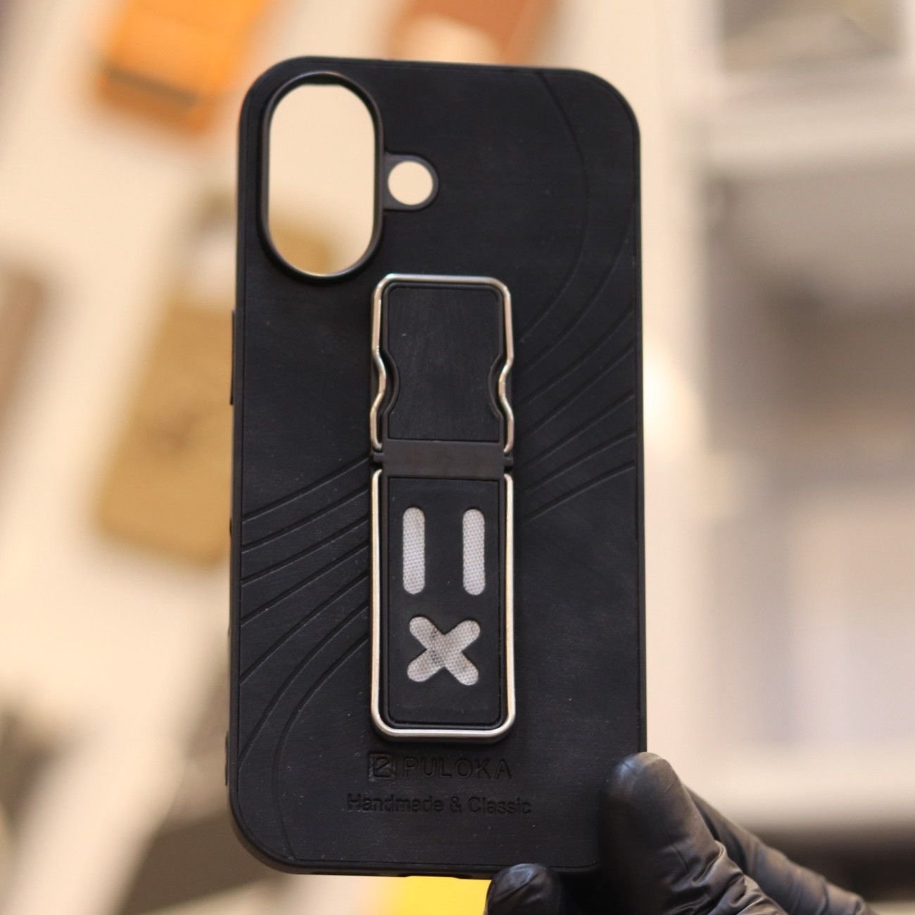 Puloka & Classic leather Textured Stand Case-Black-iPhone 16