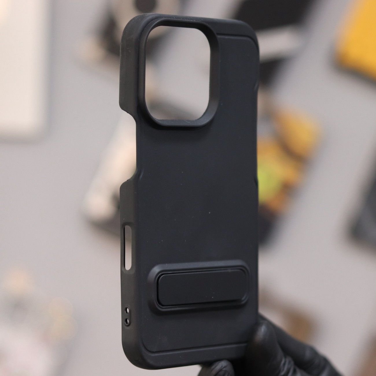 Side Cut Soft Silicone Stand Case-Black-iPhone 16 Pro