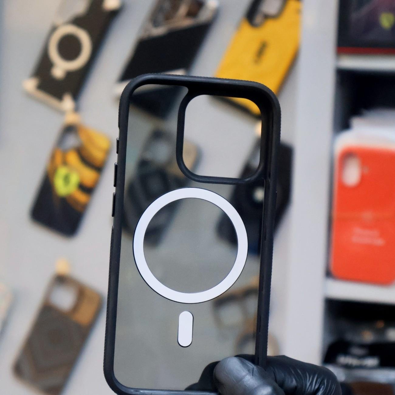 Silicone Black Border+Smoke Magsafe Case-iPhone 15 Pro